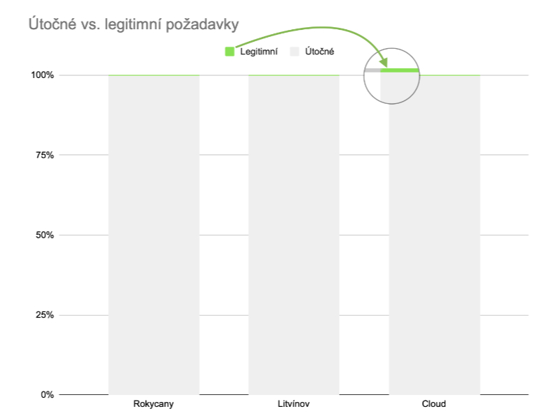 Tady bych uvedl příklad z Litvínova, kde se v prvních dvanácti hodinách Albínka vypořádala se 126 877 zloboty a 136 reálnými požadavky. Po 24 hodinách konstatujeme 295 379 útoků versus 279 legitimních dotazů.